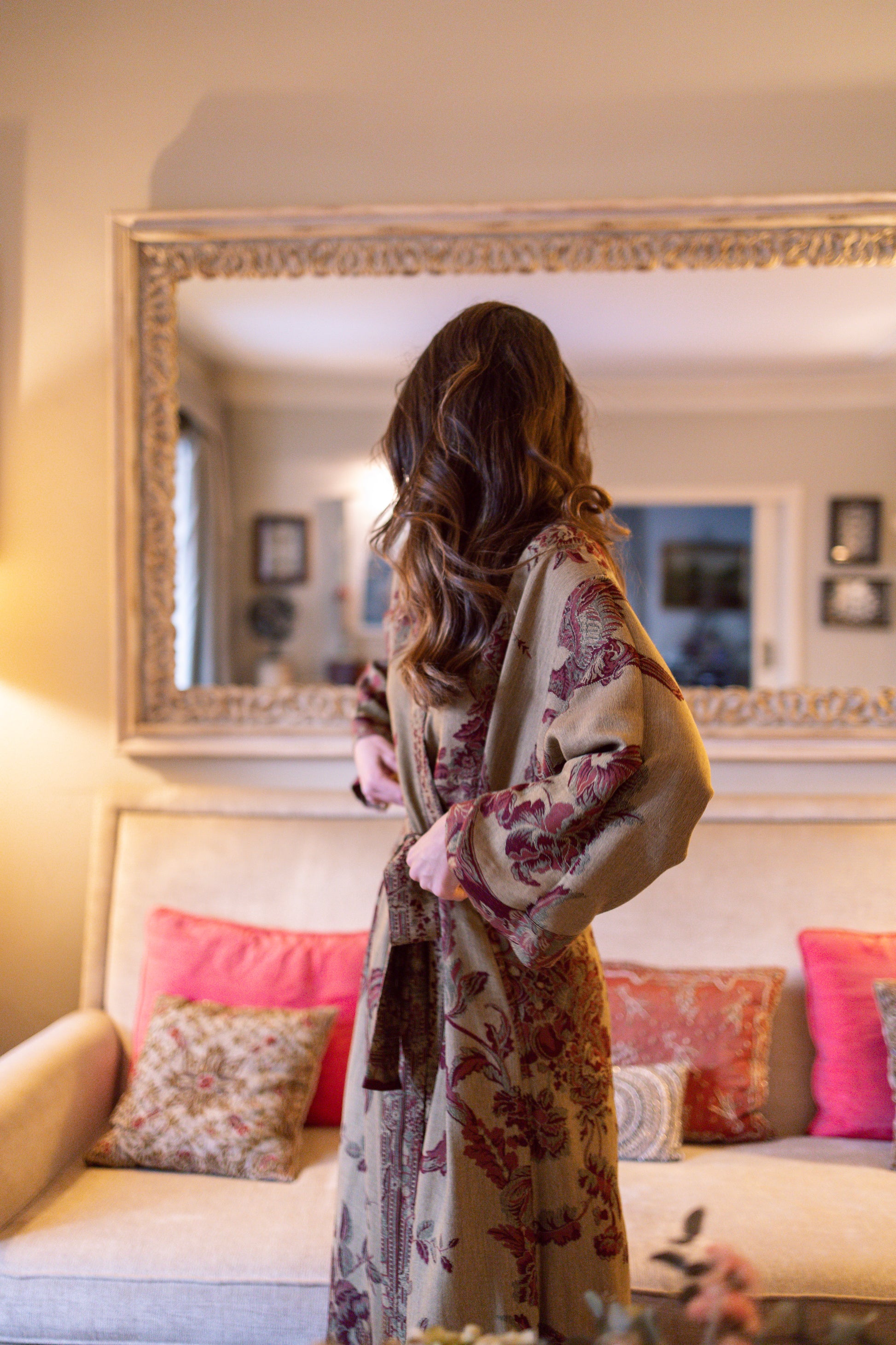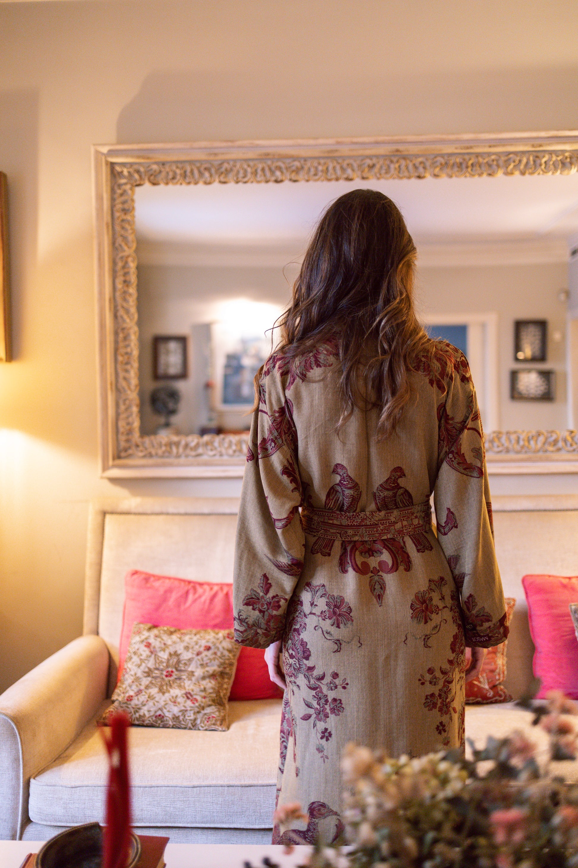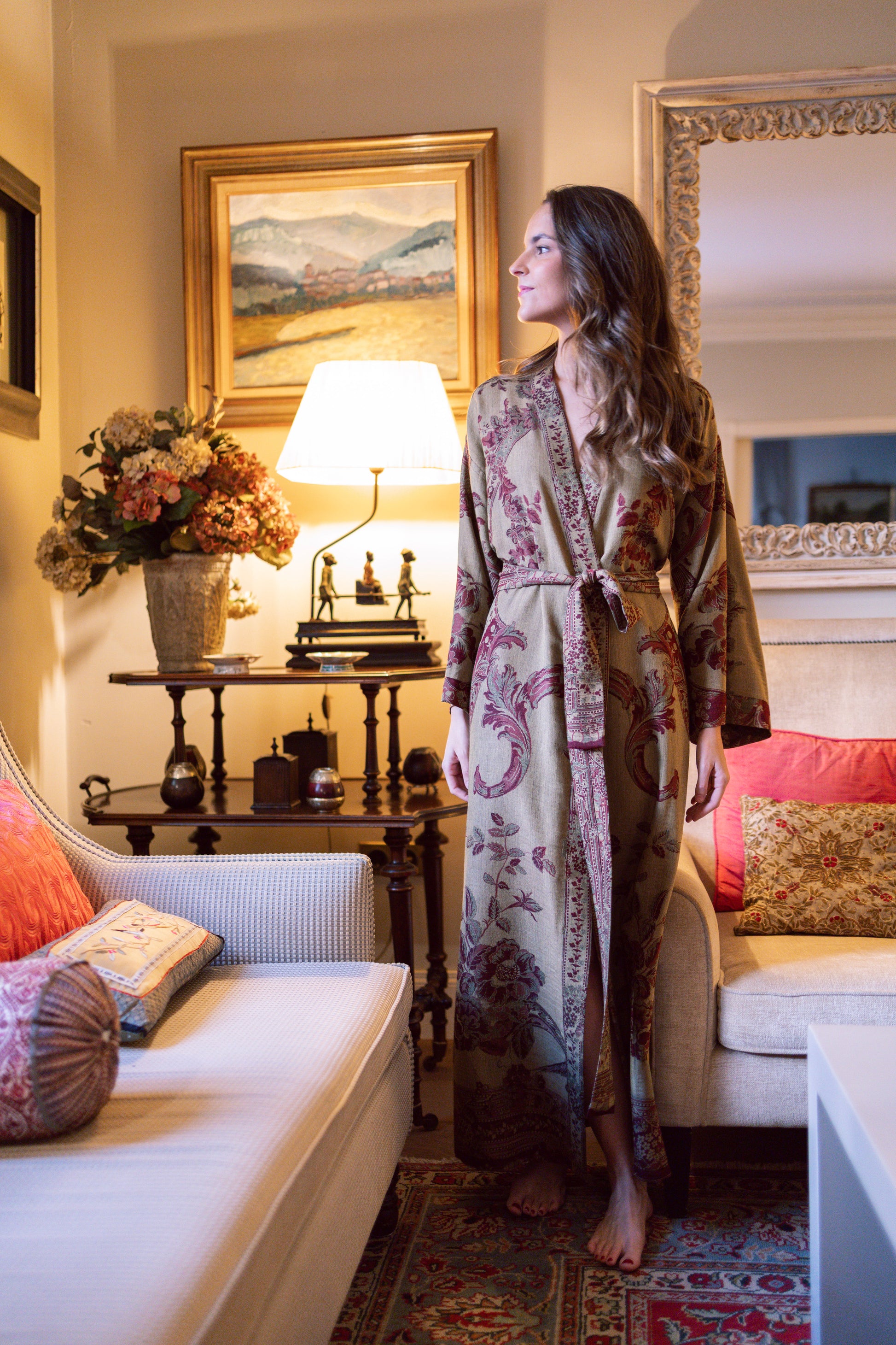 Devika es una bata con carácter, envolvente y con un encanto sereno que invita a contemplarla. Confeccionada en una mezcla premium de 70% cashmere y 30% seda, ofrece un tacto suave y agradable junto a una capacidad de abrigo excepcional pese a su ligereza.