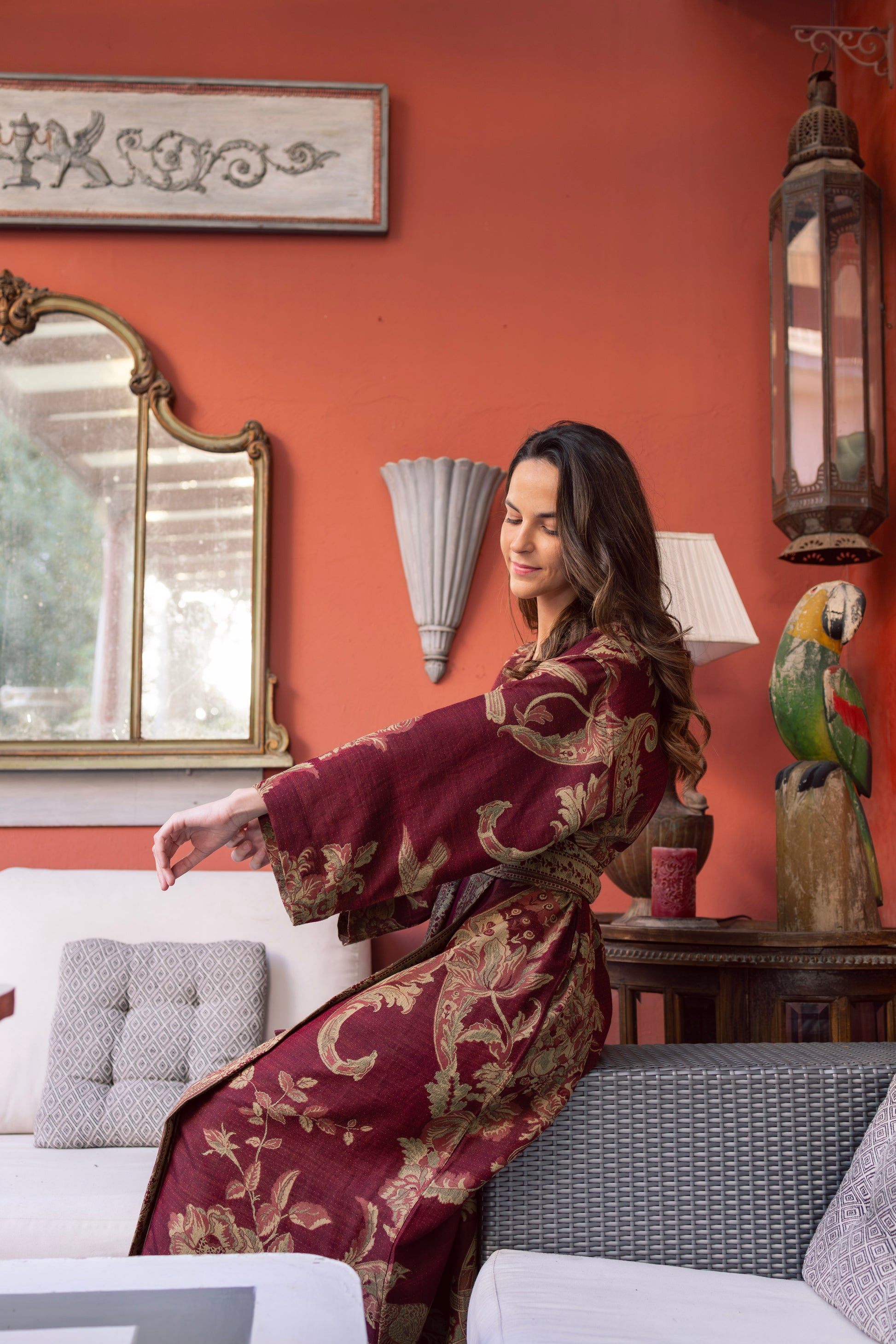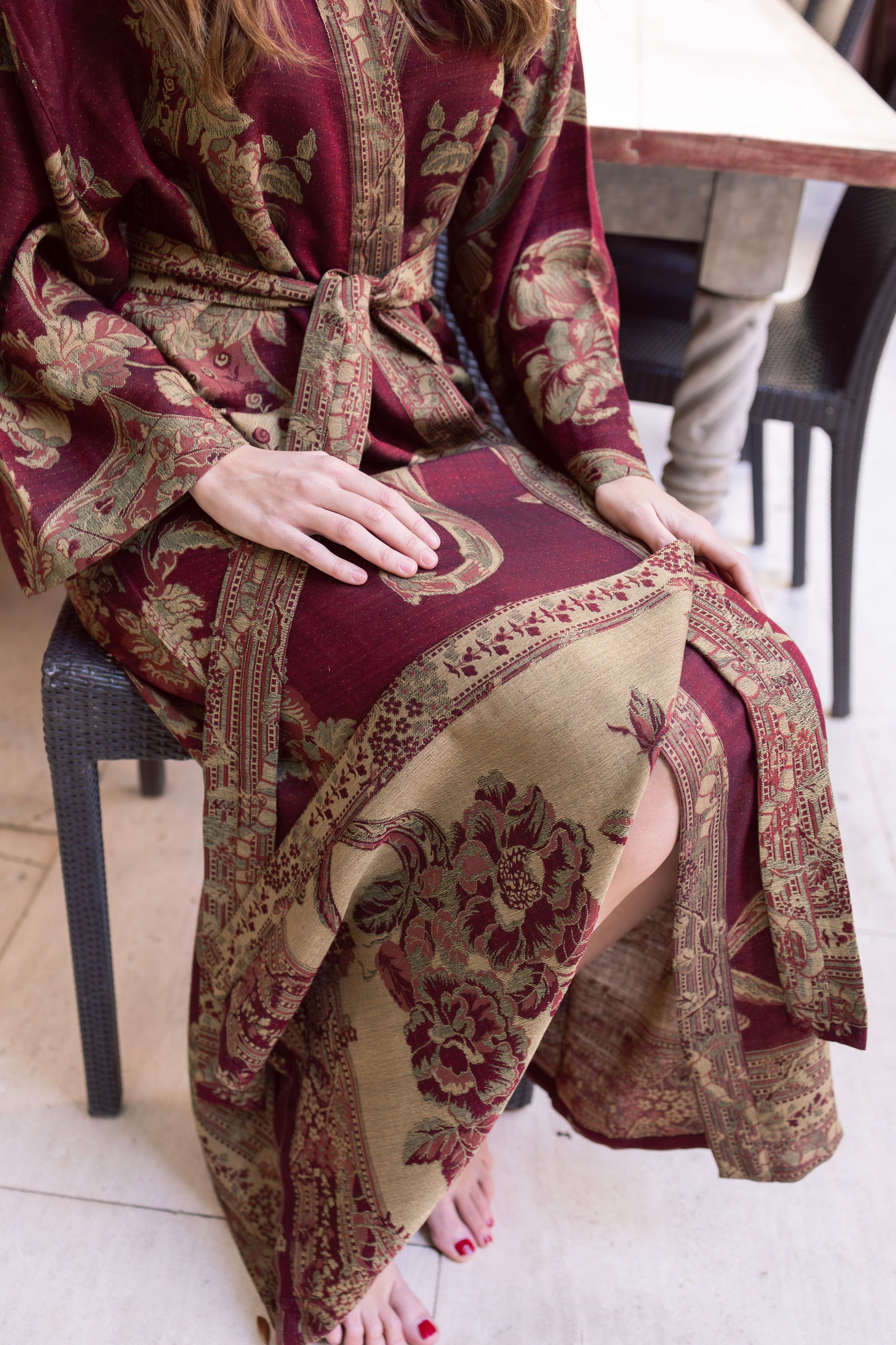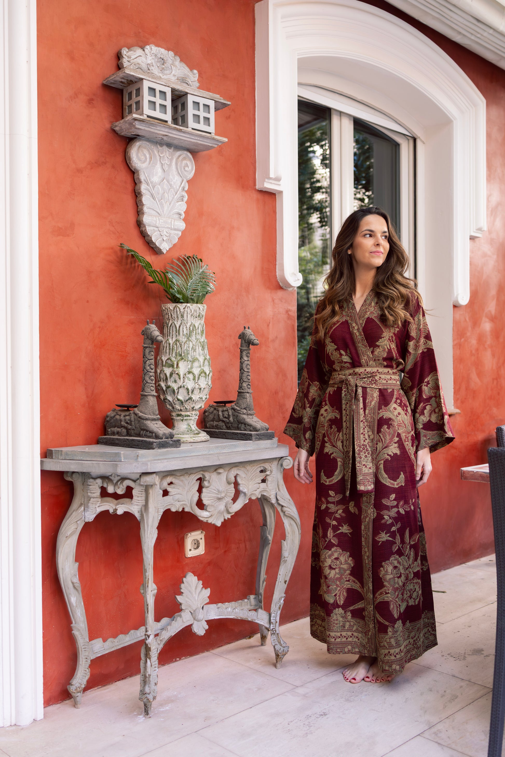 Devika es una bata con carácter, envolvente y con un encanto sereno que invita a contemplarla. Confeccionada en una mezcla premium de 70% cashmere y 30% seda, ofrece un tacto suave y agradable junto a una capacidad de abrigo excepcional pese a su ligereza.